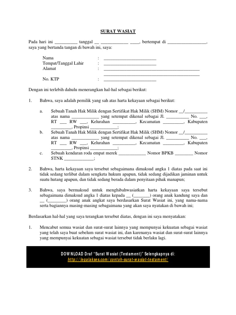 Contoh Surat Wasiat Pdf